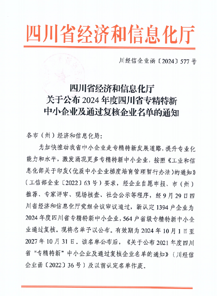 近日,四川省經(jīng)濟(jì)和信息化廳公布了2024年專精特新中小企業(yè)名單,四川艾能捷科技有限公司(Sichuan Energy Technology Co., Ltd.)憑借其卓越的技術(shù)實(shí)力和專業(yè)化發(fā)展優(yōu)勢(shì),榮獲四川省“專精特新”中小企業(yè)稱號(hào)。這一成就體現(xiàn)了艾能捷(ENERGY)公司在技術(shù)創(chuàng)新和專業(yè)服務(wù)方面的卓越表現(xiàn),也符合“... -